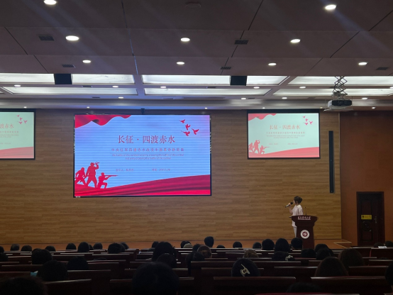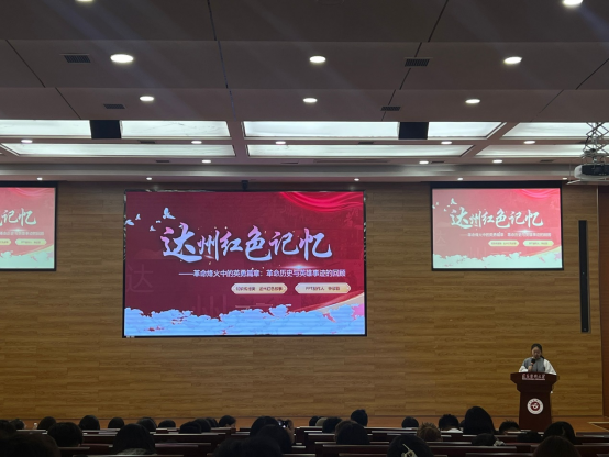 随后,两位学生代表分别进行了红色故事分享。焦灵艺同学围绕长征中的四渡赤水战役展开讲解,重现了毛泽东等指挥红军,巧妙穿插,在运动中大量歼灭敌人,牢牢掌握战场主动权,书写了战争史上的奇迹。钟欣颖同学则以红色达州为题,回顾了达州的革命历史和英雄事迹。