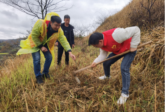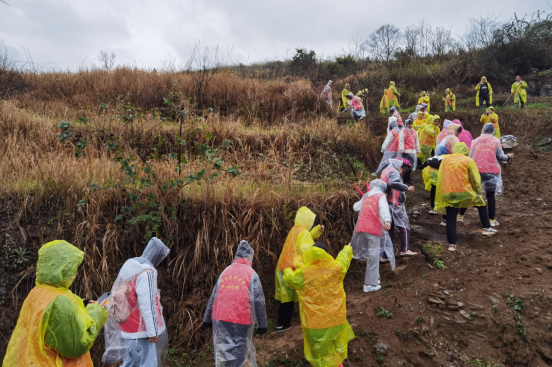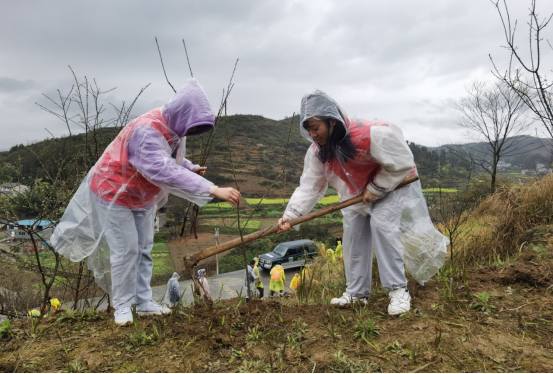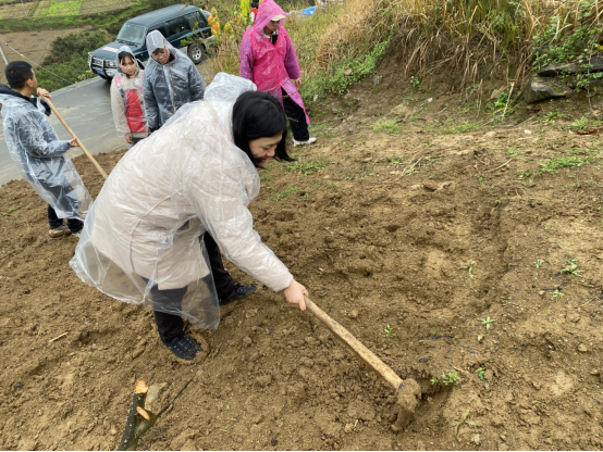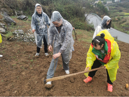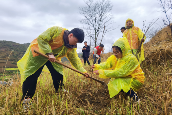 雨中植树忙,不负好时光。各学院领导、辅导员与学生代表50余人,前往遵义市湘江村开展义务植树造林活动,活动现场,新中街道办经发中心主任张绍东与湘江村党支部书记丁汉俊向师生简要介绍了乡村振兴相关政策与湘江村的基本情况,农业技术人员向大家详细讲解了蜂糖李树苗的种植方法与注意事项,在技术人员指导下,大家密切配合、通力合作,挥锹铲土、扶树正苗,培土围堰,淅淅沥沥的春雨,丝毫没有影响劳动的热情,经过一番辛勤劳作,师生与湘江村村民共种植了300棵李子树苗。“春天播种希望,四季收获快乐,此次活动中,让我切实感受到了劳动的意义所在,相信我们的生活环境会越来越多姿多彩,更加绿色生态!”来自临床医学专业的罗斗胜同学如是说。