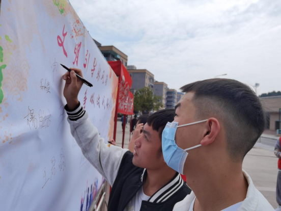 营造文明环境。将劳动教育与志愿服务相结合,常态化开展文明校园志愿服务活动,积极参与校园公共区域卫生保洁、规范车辆摆放,开展校园文明礼仪宣传、“弘扬文明新风尚,争做时代好青年”签名等活动,以实际行动传承中华民族优秀传统美德,助力营造文明、和谐、美丽的校园环境。