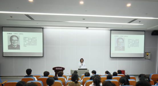 在图书馆一楼二号报告厅,学生团干部为同学们深情讲述中国科学院院士吴汝康、中国微生态学之父魏曦院士、医学生理学家沈其震、革命征程上的医者王布君、历年遵义医学院院长陈荣殿、华夏生理师吴襄、中国药理学奠基人张毅等遵医先贤在艰苦岁月中坚持医学研究、救死扶伤、培育医学人才的事迹。一个个鲜活的故事,让同学们深感先贤们为医学事业奉献的伟大精神。学生代表结合自身学习生活发表感悟,表达对遵医先贤的敬仰之情,立志传承遵医精神、努力学习专业知识、培养高尚的医德、为医学事业奋斗的坚定决心。