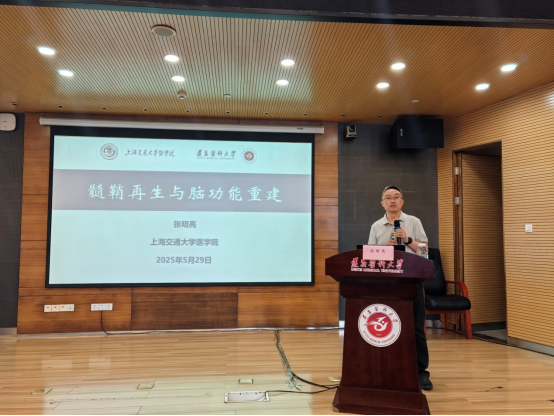 韩勇副院长主持,我校100余名师生参会。报告围绕脑科疾病与髓鞘的关系以及髓鞘再生细胞移植治疗、体内原位再生、糖基化下调髓鞘发育、髓鞘再生的药物研发等方面进行了详细的介绍,并与我校多位师生就脑功能通路、髓鞘再生、相关化学小分子的筛选和临床转化等问题进行了深入交流。