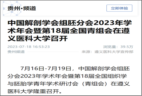 2023年7月16日-7月19日,中国解剖学会组胚分会2023年学术年会暨第18届全国组织学与胚胎学青年学术研讨会(青组会)在漫画柜