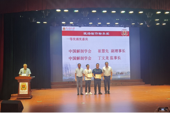 9月24日,由中国解剖学会主办,南方医科大学承办的第九届全国解剖学技术学术会议暨第三届解剖标本现场制作大赛在广州南方医科大学胜利召开。来自国内36所医学院校200多名解剖同仁参加会议,我院人体解剖学教研室选派的陈飞和黎小池2位实验技术员在现场标本制作大赛中分别获得足底组一等奖和足背组一等奖的佳绩。同时张潜老师投送的《三全育人背景下人体解剖学开展课程思政的实践与体会》获得优秀论文奖。