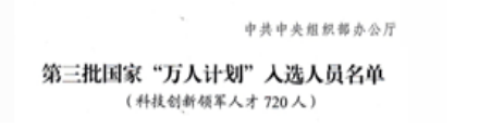 第三批国家“万人计划”科技创新领军人才 |