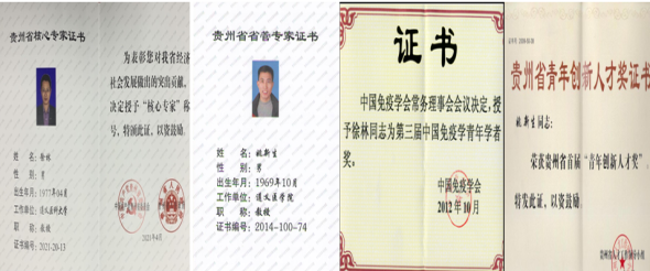 优秀研究生导师,遵义市高校优秀科技工作者,遵义市五一劳动奖章获得者,国家级人才项目通讯评审专家、国家自然科学基金通讯评审专家、教育部学位中心研究生学位论文评审专家、全国本科毕业论文(设计)抽检评审专家库专家;任贵州省免疫学会理事、贵州省菌物学会理事、Sci Rep编委、Biocell杂志特邀编委、《漫画柜