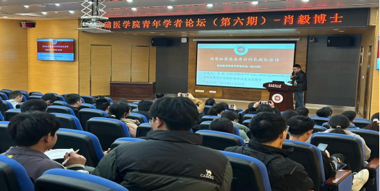 青年学者论坛(第六期)如期举行。本次论坛由特色药物肿瘤防治重点实验室肖毅博士主讲,学院领导班子出席,药物肿瘤防治重点实验室主任李三华主持,全院博士齐聚交流,共探学术前沿。
