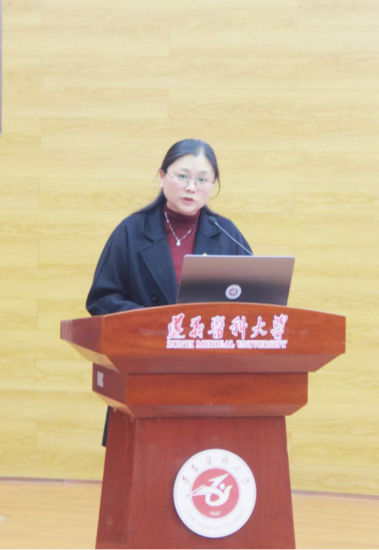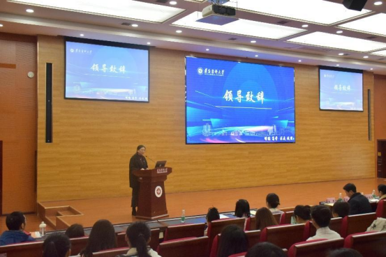 研究生院院长宋鸿致开幕词,她强调了研究生教育在医学人才培养中的重要性,并对研究生们在科研道路上的探索和奋斗给予了高度赞扬和期望。