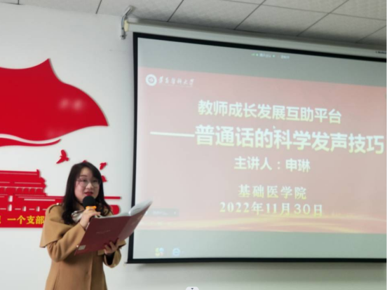 坚持把国家通用语言文字作为教育教学基本用语用字,严格以普通话作为课堂教学基本用语,督促普通话不达标的老师个人自学。同时,为帮助广大教师科学用嗓、正确发声,减轻声带疲劳和损伤,学院邀请党委宣传部综合科科长、贵州省普通话测试员申琳老师授课,于2022年11月30日下午15时50分对学院全体教师开展《普通话的发声技巧》培训。培训会由韩勇副院长主持。